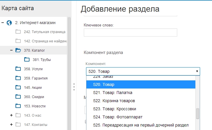 Если для ваших товаров нужен компонент с уникальными полями (характеристиками товара), создайте новый компонент на основе существующего компонента «Товар 2.0», при этом мы советуем не удалять поля, которые перечислены выше.